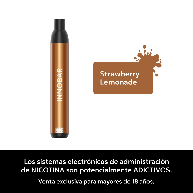 Al ser ZERO NIC, este dispositivo no contiene nicotina, lo que lo hace una excelente opción para quienes desean disfrutar del vapeo sin los efectos asociados a la nicotina. El Innobar 2500 Puffs – Strawberry Lemonade ZERO NIC transforma cada calada en un momento dulce, fresco y relajante, ideal para los amantes del sabor y la simplicidad.